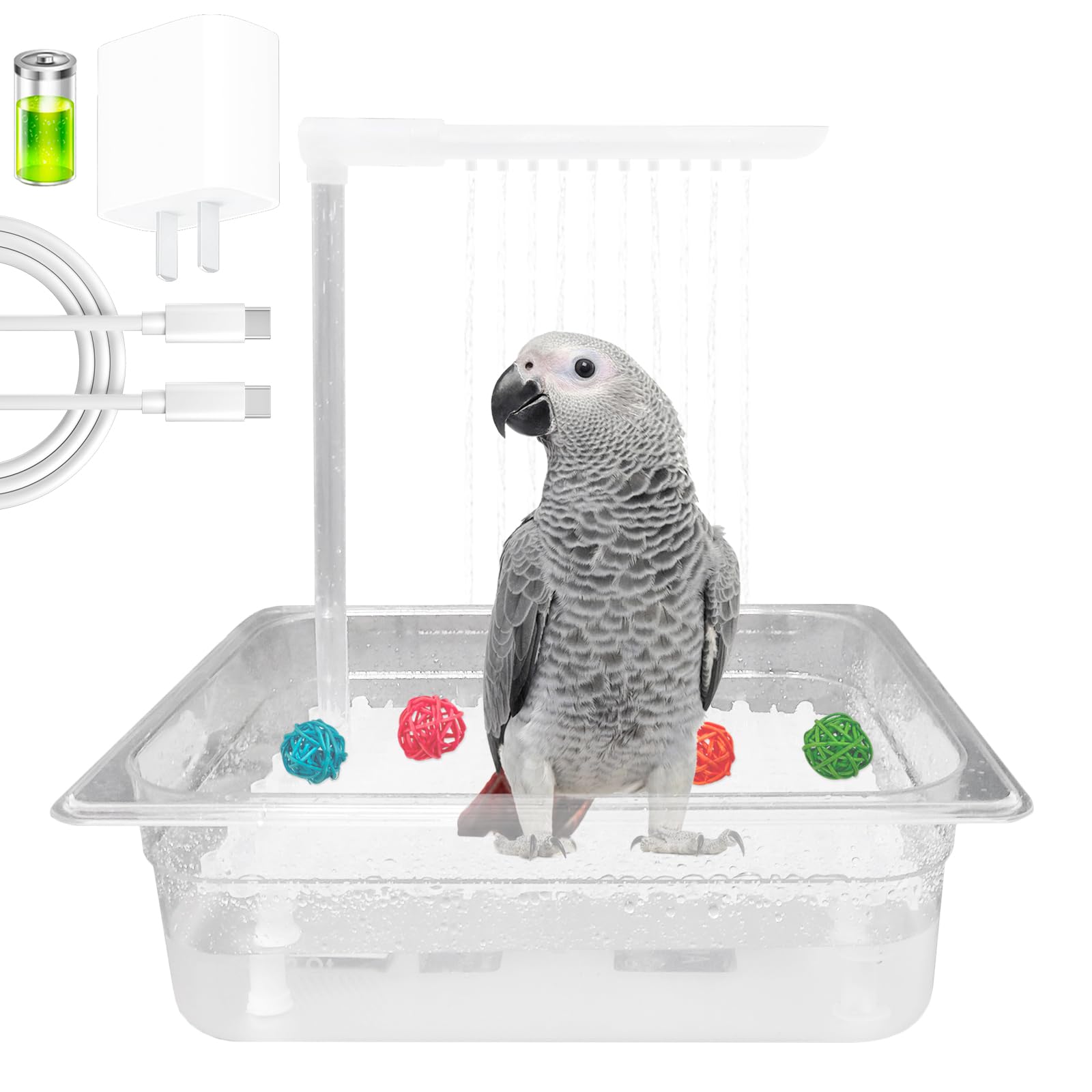 Rywell Parrot Bathtub Bird Automatic Bath Shower with 180 ° Circulating Faucet Contains USB and Power Plug for Medium Birds African Grey Amazon Conure Parakeet Cockatiel Lovebird