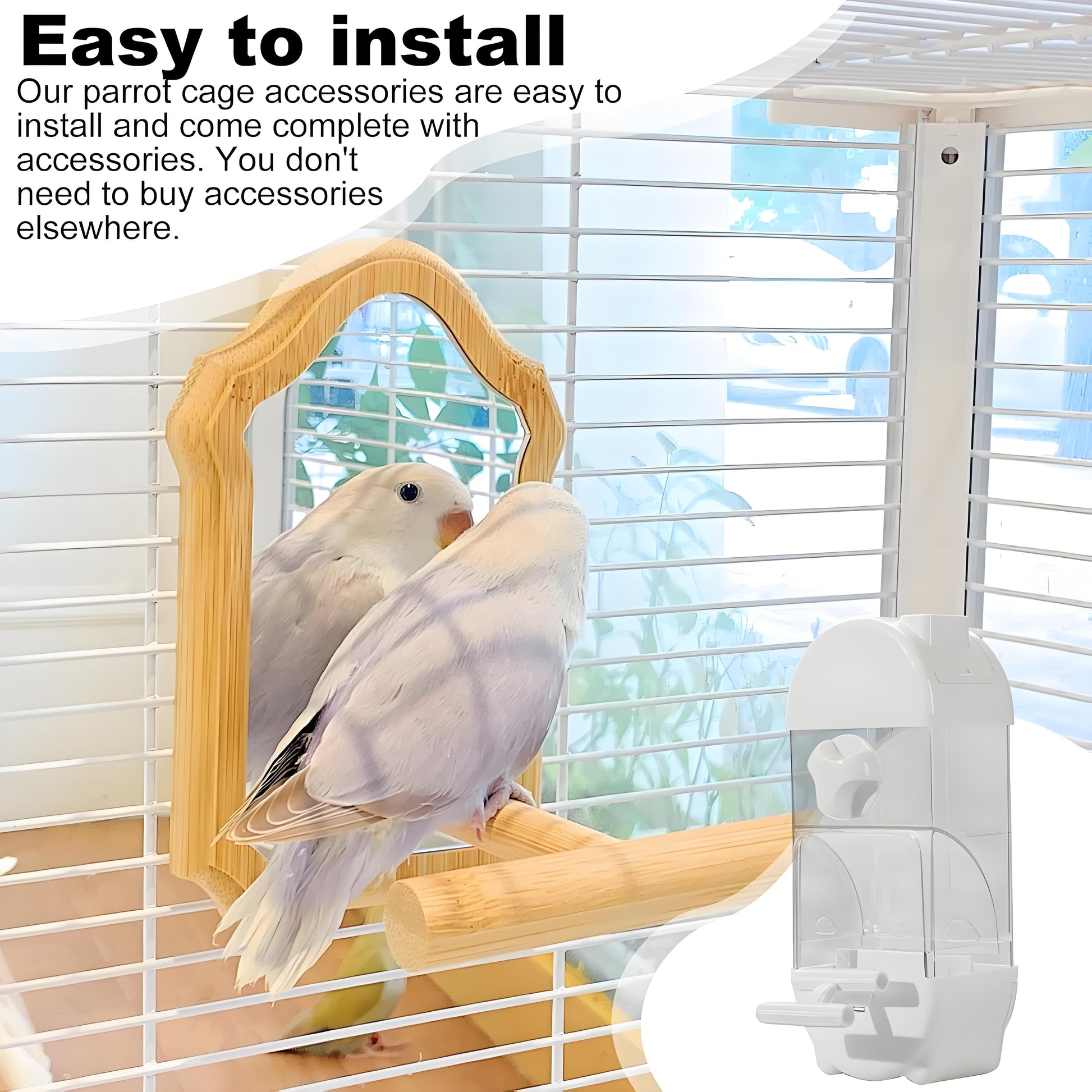 Combines food and water in one smart solution—perfect for parakeets, cockatiels, and other small birds.