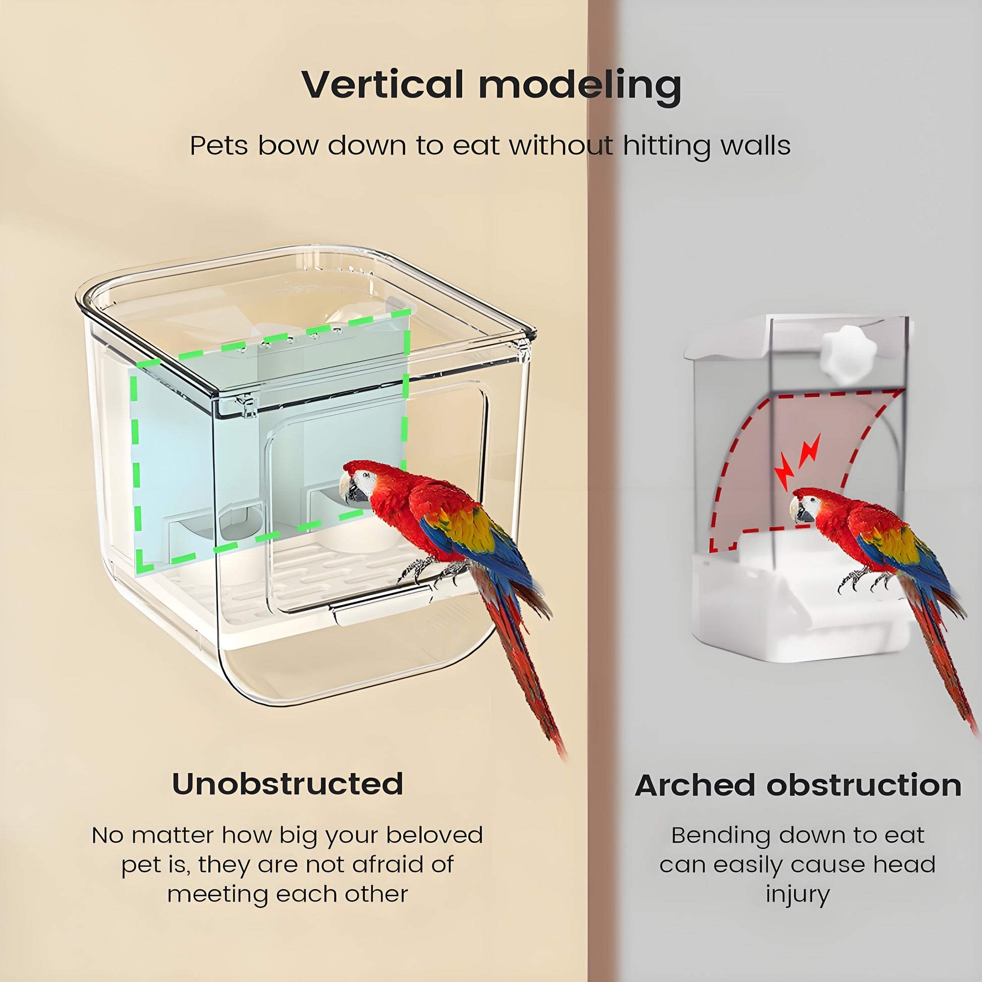 Allows birds to feed from different angles, matching natural eating behaviors and improving comfort.