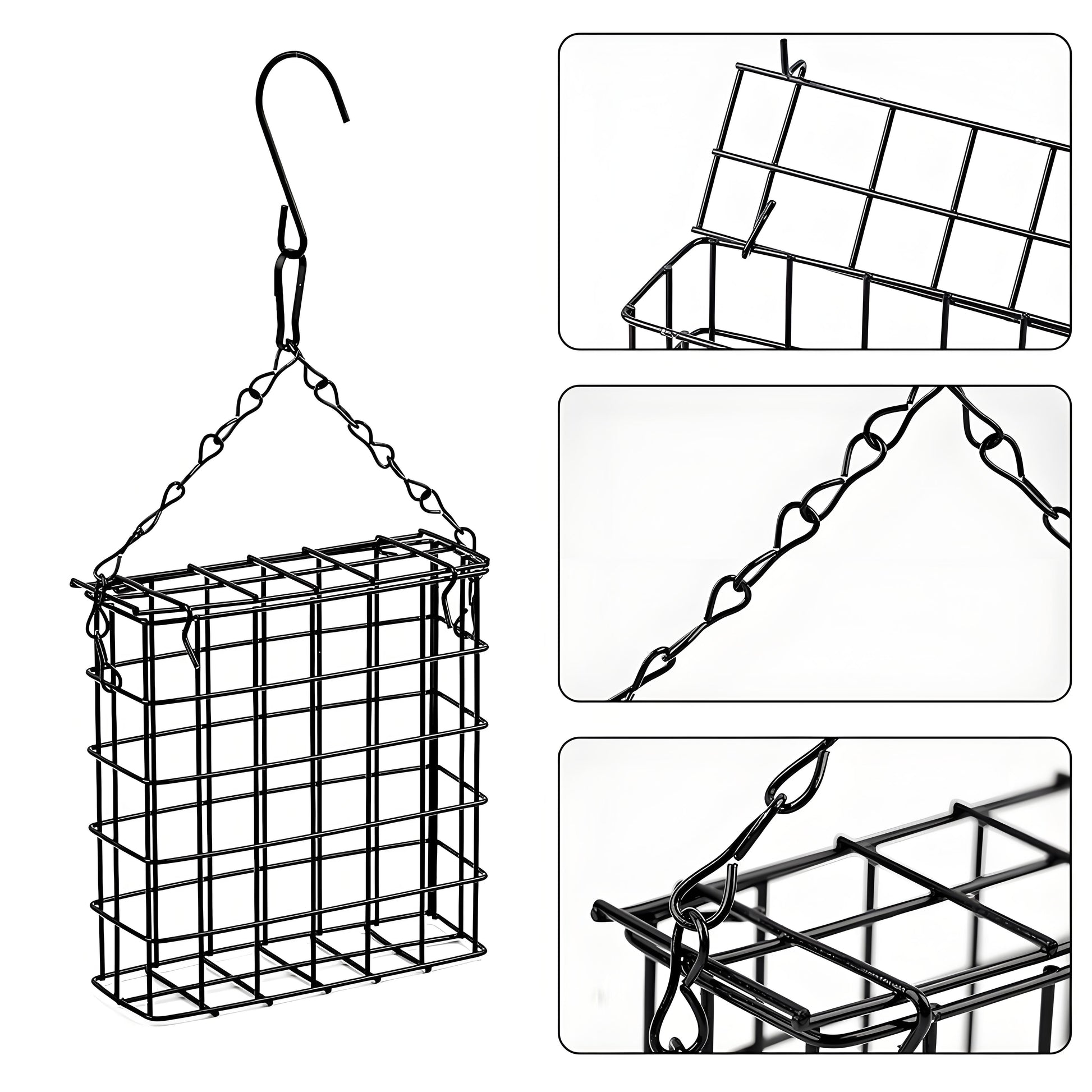 Made with high-quality steel and an anti-rust coating, this suet bird feeder is designed for long-term outdoor use. The evenly sprayed protective finish helps prevent corrosion and aging, making the feeder strong, reusable, and durable in different weather conditions.