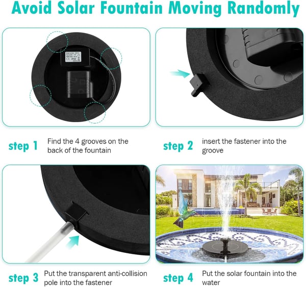 Basta immergere la fontana nell'acqua e inizierà a funzionare immediatamente alla luce del sole. Perfetta per vasche per uccelli, piccoli stagni, acquari o decorazioni da giardino. Una pulizia regolare e cambi d'acqua la manterranno in funzione per anni.