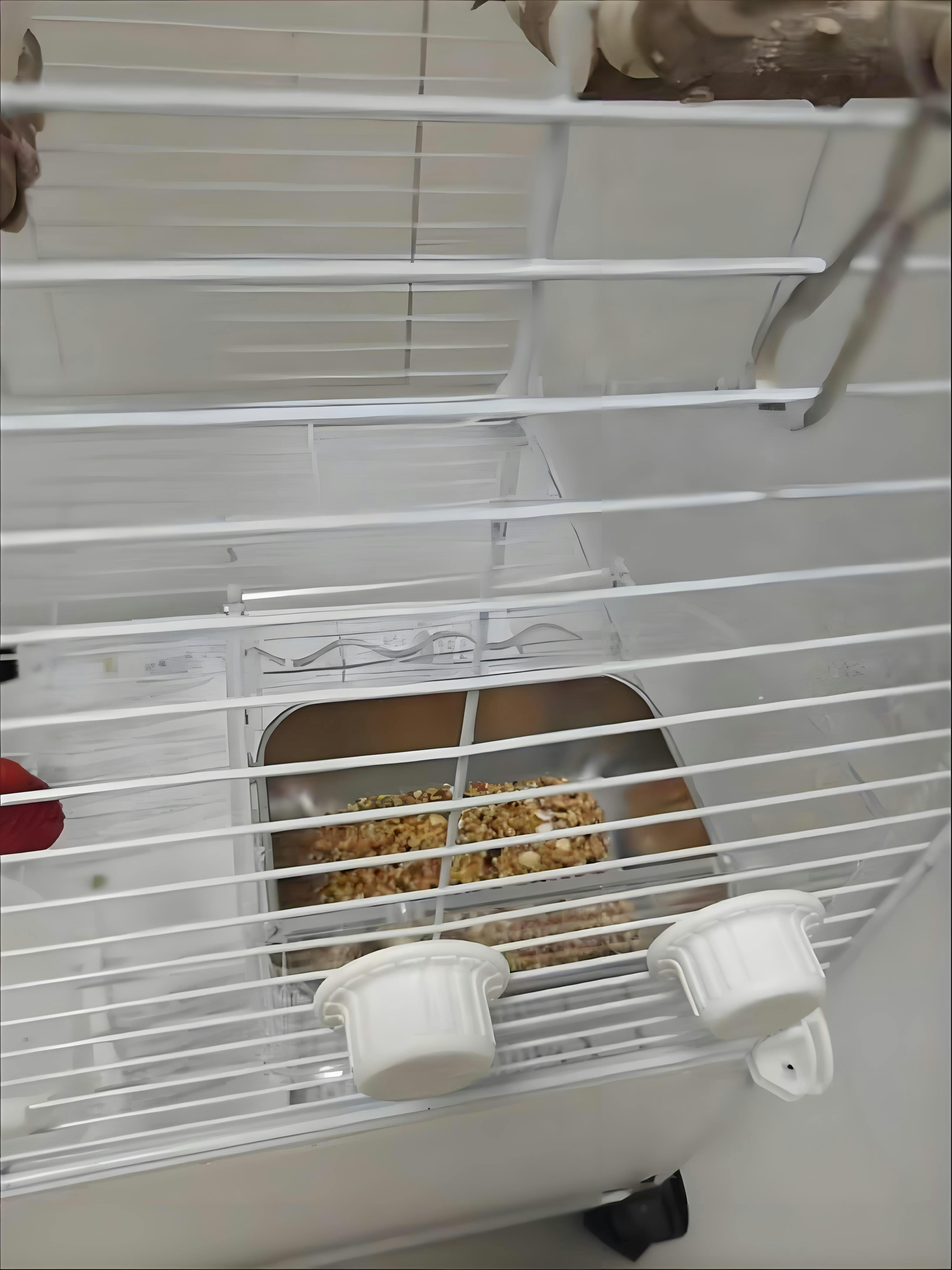 Unlike hanging feeders that spill or tip over, this cage-mounted design stays firmly in place—preventing food waste and mischievous bird behavior.