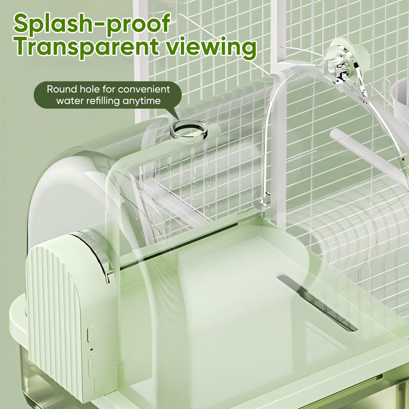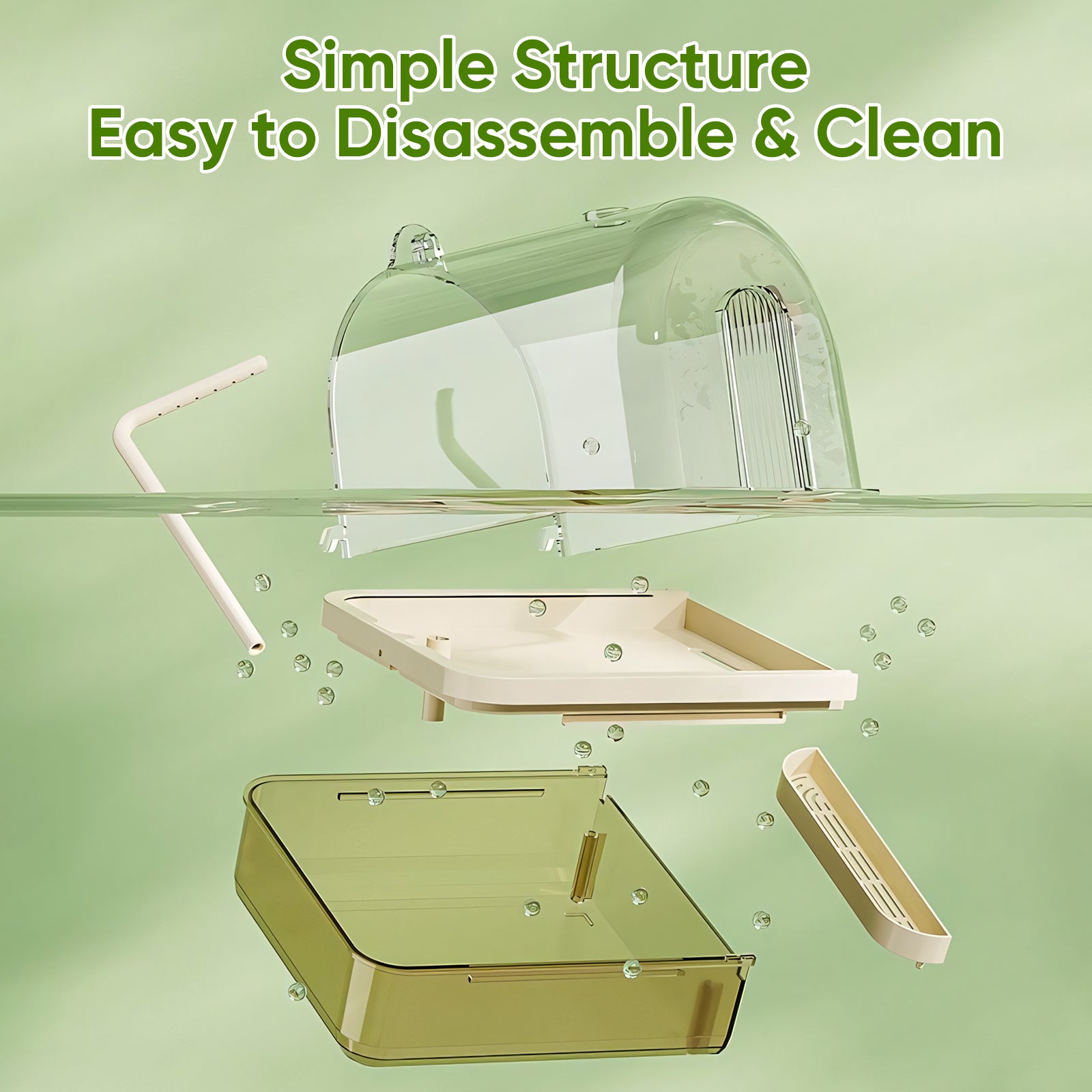 - Detachable Design, Easy Cleaning: The bird bath features a fully detachable structure and smooth inner surface, ensuring hassle-free, no-dead-angle cleaning. The bottom drawer slides out instantly for quick water refilling, waste removal, and maintenance, keeping your pet’s bathing environment hygienic.