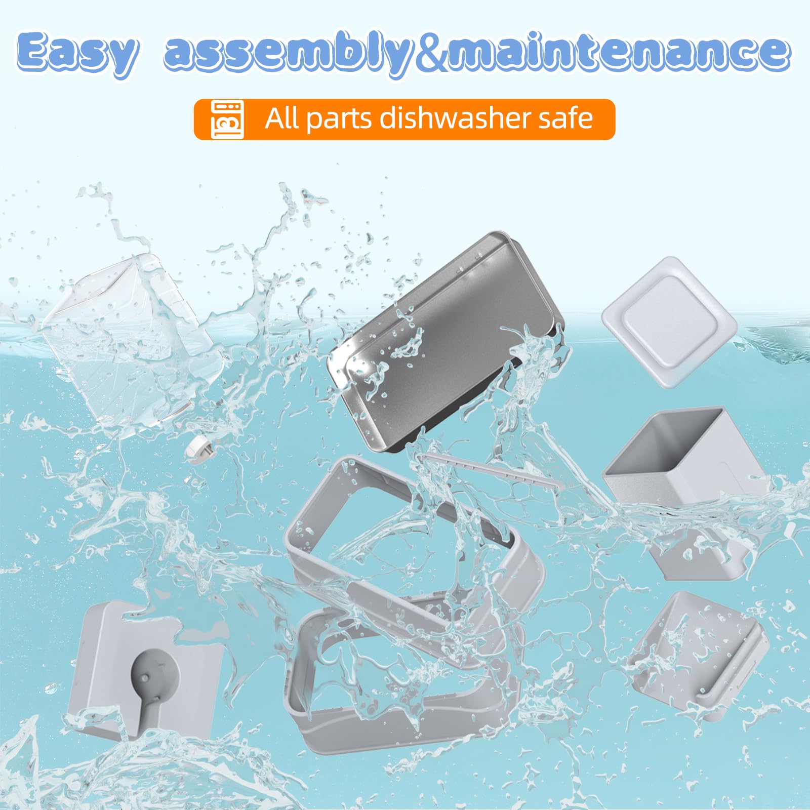- đ¶ăEasy to clean, ensuring your pet's health!ăCleaning is a breeze with our split design, allowing for quick disassembly and thorough washing of every part. Both the water/food tank and base are dishwasher safe, ensuring a hassle-free clean every time. Plus, the entire set is dishwasher-safe, so you can keep everything spotless with minimal effort. The visible water level lets you monitor supply at a glance, so you can refill or clean as neededâno guesswork, no mess.