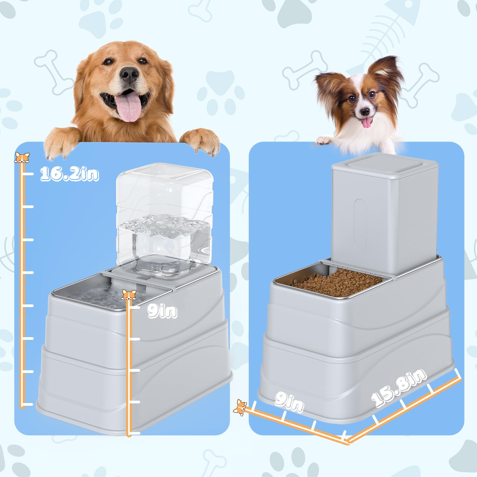 - đ±ăElevated Feeding, Healthier LivingăEnhance your petâs mealtime with an ergonomic design! Our automatic pet feeder and water dispenser set, with three adjustable height levels (2"/4"/9"), suits dogs and cats of all sizes. The elevated design ensures easy access to food and water while minimizing exposure to external particles. Provide your furry friend with a clean, stress-free dining experience that promotes healthy digestion and reduces strain on their neck, spine, and joints!
