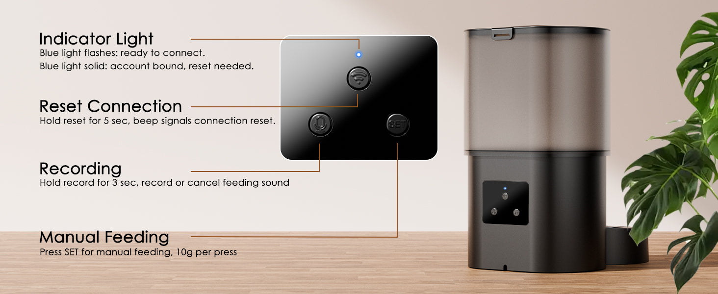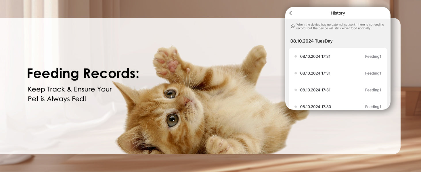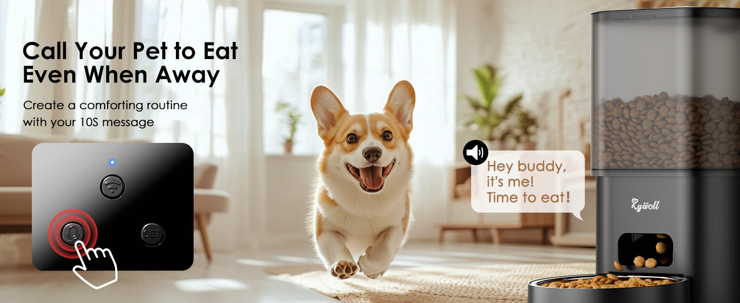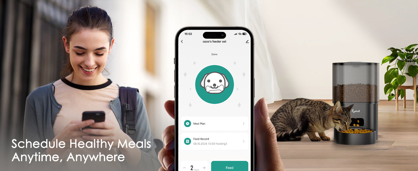 Easily schedule and manage your cat’s meals anytime, anywhere with the Rywell automatic cat feeder app. Set up to 9 meals per day, monitor feeding remotely, and record a 10-second voice message to comfort your pet during mealtime.
