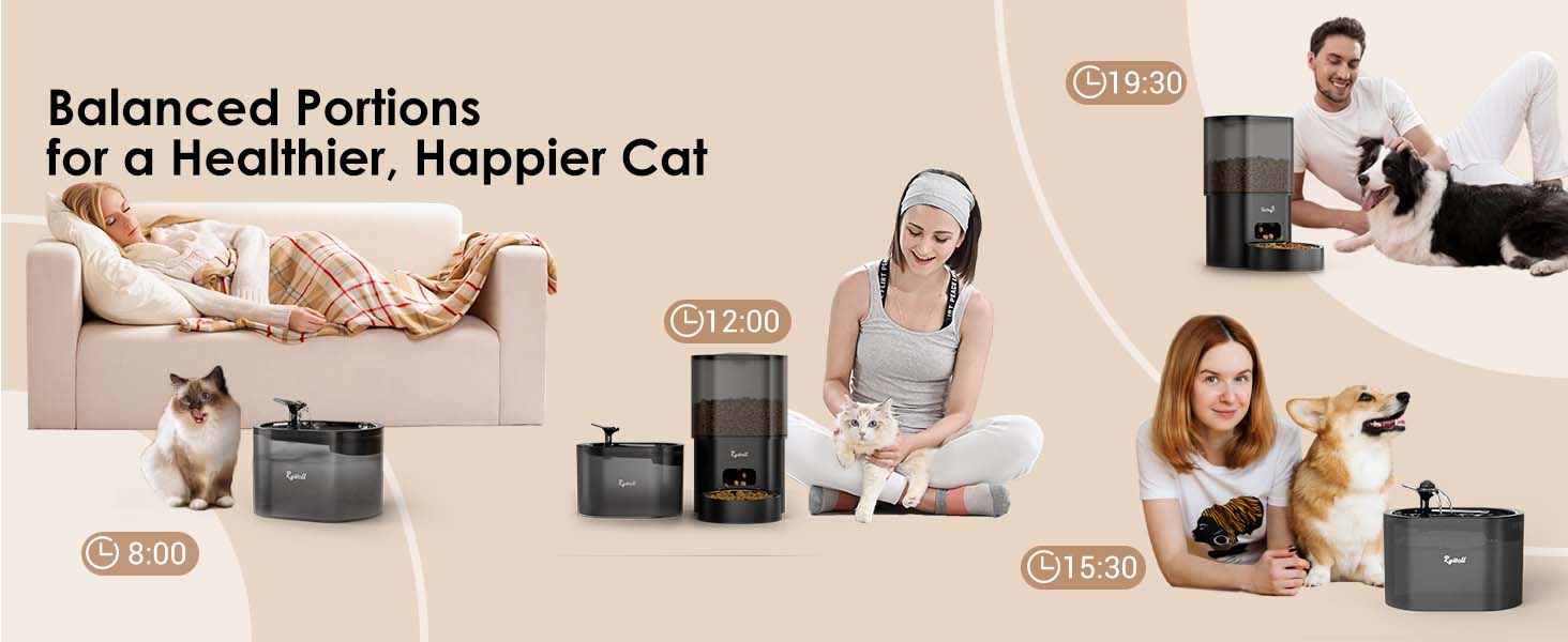 Rywell Automatic Cat Feeder with Water Dispenser, 2.4G WiFi Timed Food Dispenser with Portion Control, 2-In-1 Feeding Set for Cats & Small Dogs, Wire or Battery Powered
