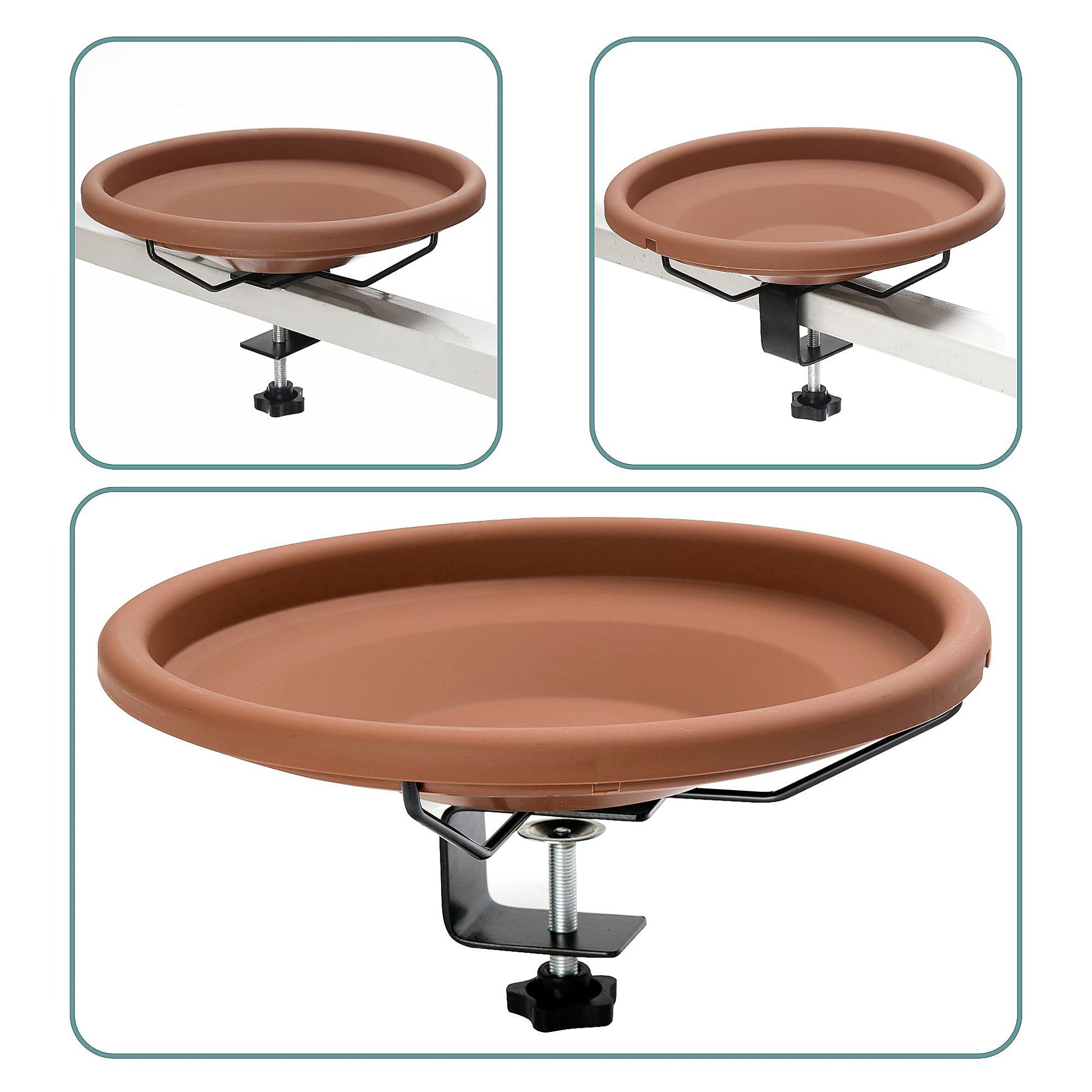 Rywell Bird Bath Deck Mounted Bowl 12 Inches, Balcony Railing Birdbaths Unheated, Bird Bath Fence Clamp Detachable