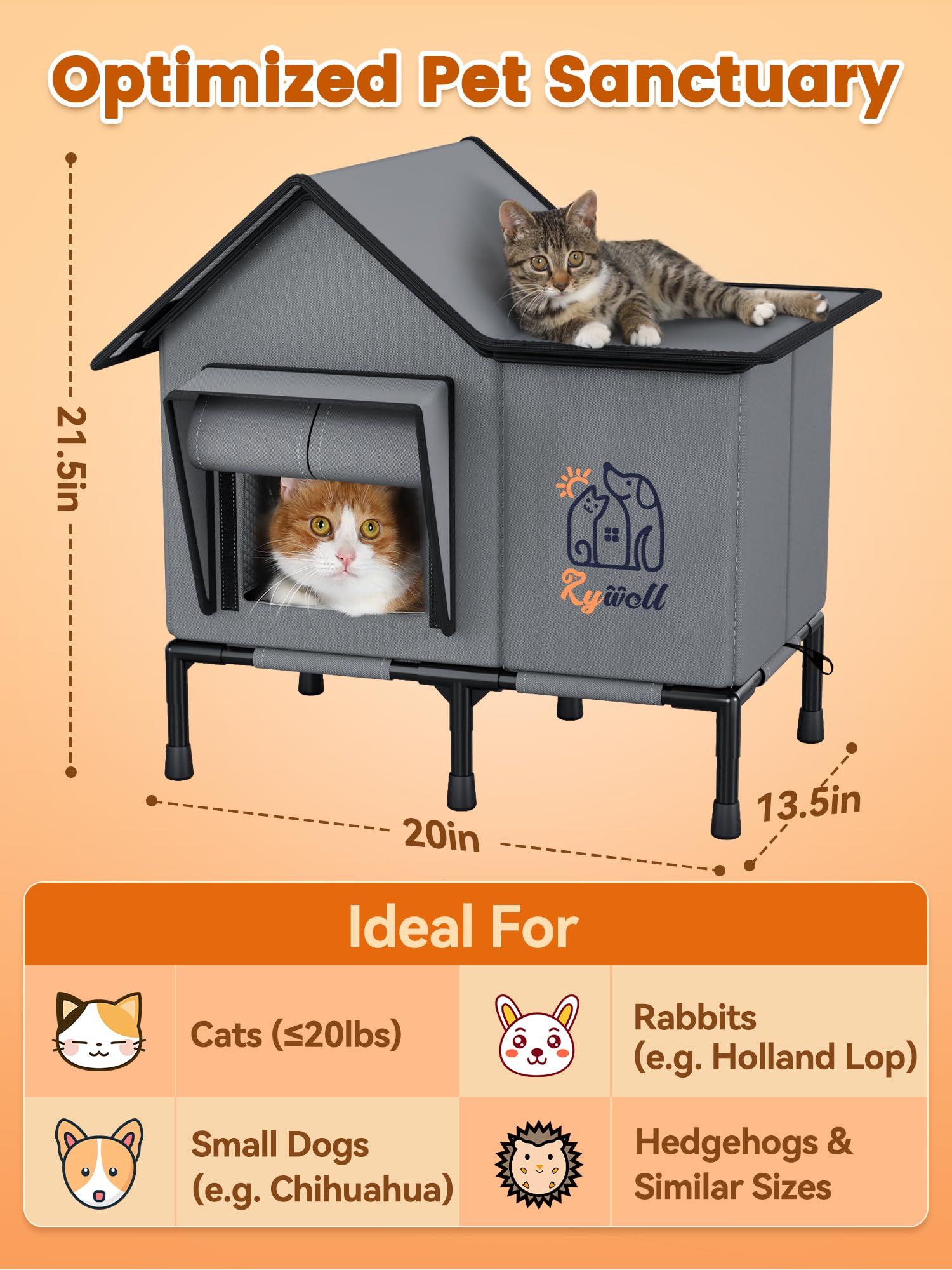 Rywell Heated Cat House for Outside,Super Insulated&Weatherproof Heated Cat House, Elevated Outdoor Cat Shelter for Feral Cat with Waterproof Eaves,Timer & Temp Adjustable