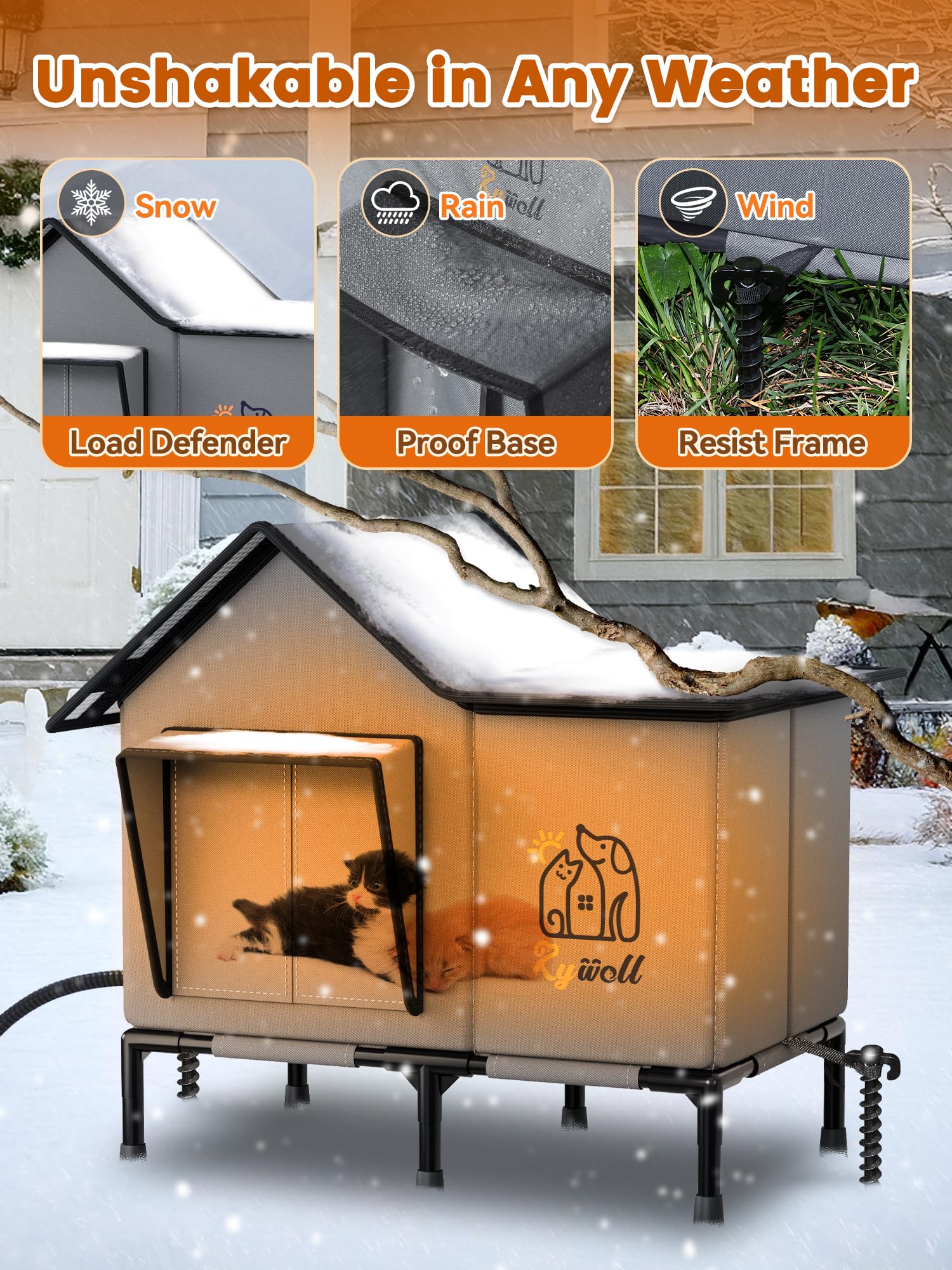 - ā¤ļø[Where Innovation Meets Compassion] Picture this: rain drums overhead while your cat naps in Rywellās Heated Cat House for Outsideānow perfected by real-world wisdom. Every upgrade, from the near-100% waterproof PVC roof to the dual-entry escape doors, was born from listening to pet parents and feral rescuers. Weāve tested these refinements alongside rescue communities, ensuring even skittish souls find refuge in this outdoor cat house. This isnāt just engineeringāitās a promise crafted with purpose. Because when storms rage, your weatherproof outdoor cat house stands guard: their sanctuary, your peace.