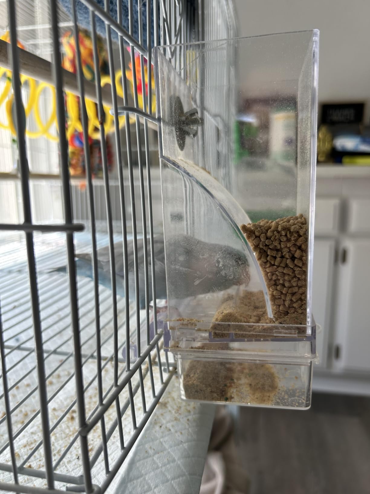 Made from high-quality acrylic, the feeder is durable and fully transparent for 360° visibility—making it easy to monitor both your bird and the seed level at a glance.